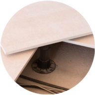 Substrate: The substrate must be appropriately waterproofed and have a suitable pitch (1.5-2%) and systems for water drainage. The surface must have the strength required to support the concentrated load applied by the pedestals.